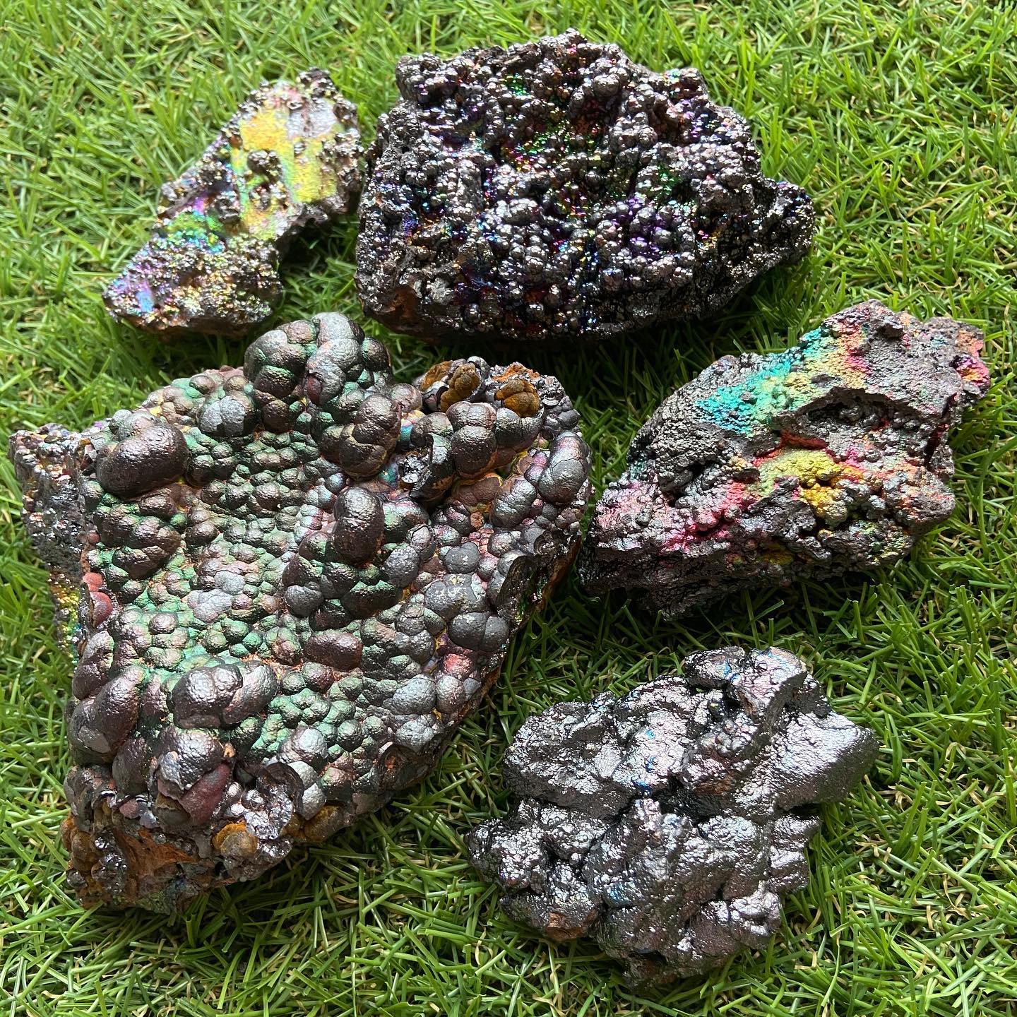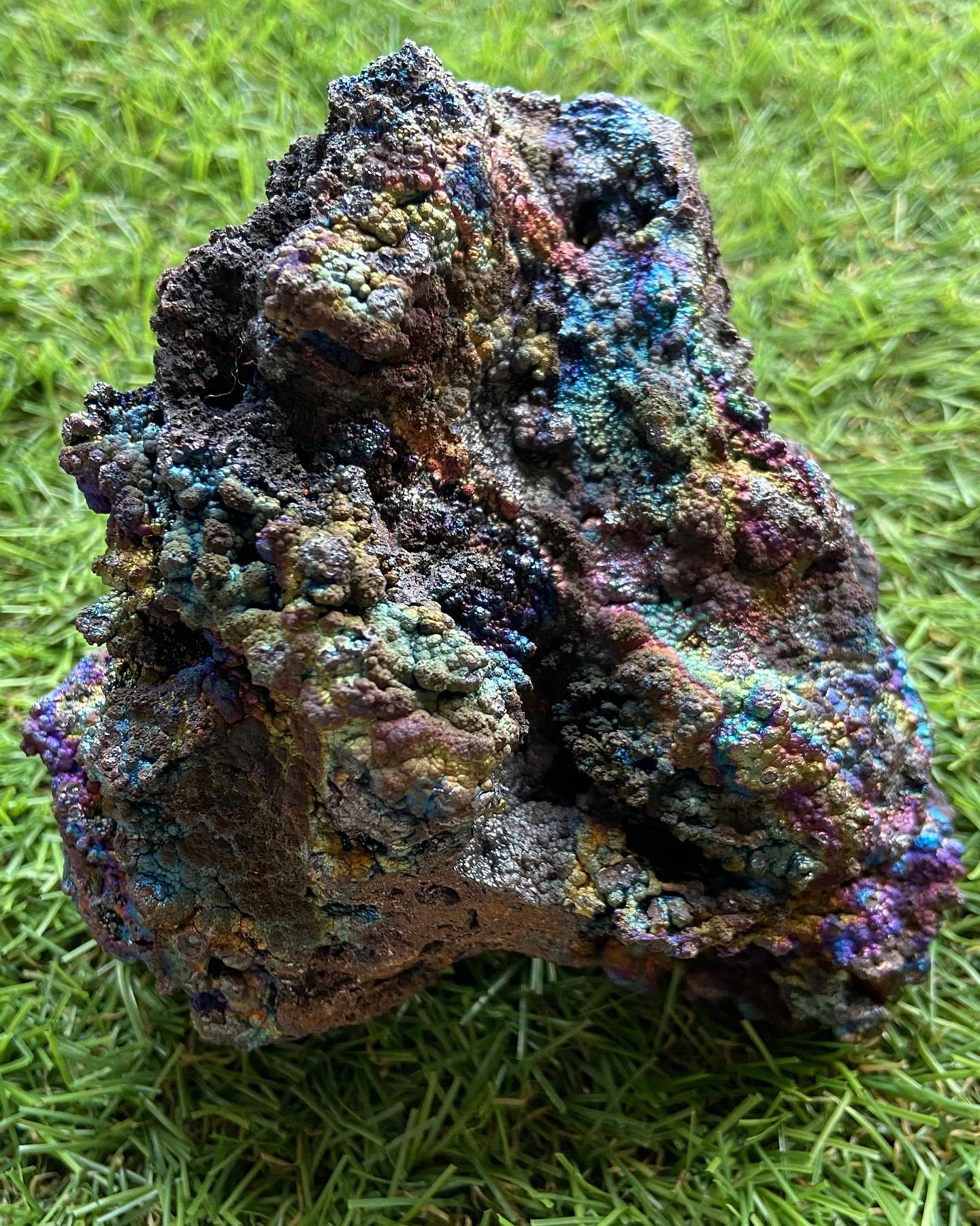 Iridescent Goethite is a type of natural mineral that can come in various colors such as yellow, orange, red, brown, black-brown, yellow-brown, red-brown, and even iridescent hues. The stone’s interior is often radial in shape. Sometimes, the mineral can form columnar crystals with longitudinal stripes, but it is more commonly found in a block shape (resembling a bird’s nest or DNA) or in grape-like clusters, with a metallic luster on its surface. The unique formation of the stone often attracts collectors. The name “Goethite” originates from Johann Wolfgang von Goethe, a German poet, mathematician, philosopher, and naturalist.