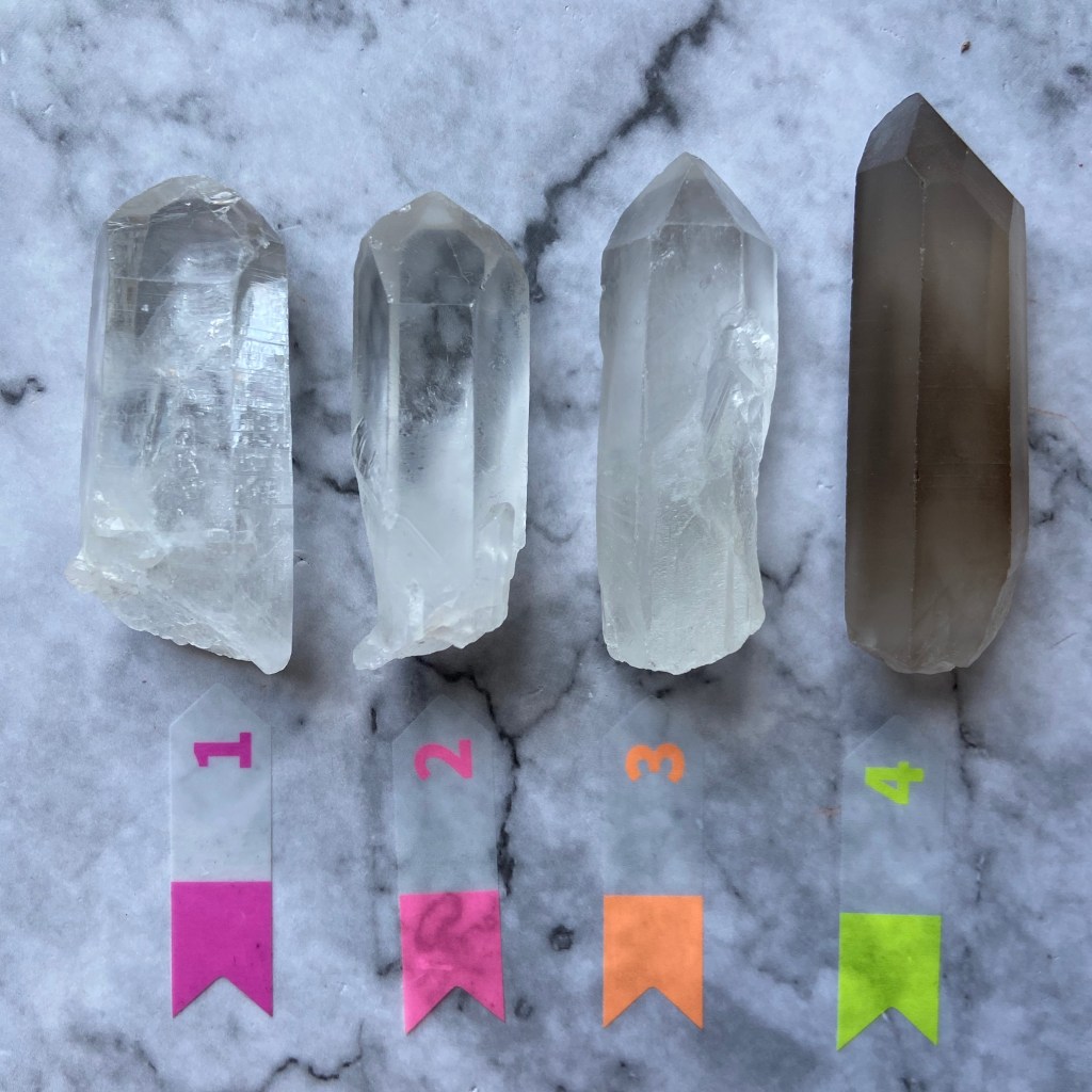 - 通靈水晶(Channelling) :六面結構當中看到一個7邊形後面有3角形的都是通靈水晶,排列即前7後3。通靈水晶是進階靈修人士的老師,可刺激開發第三眼。