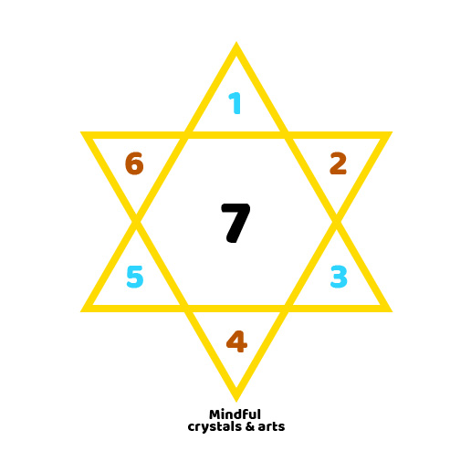 he pattern of the Seven Star Array is an upside-down triangle, which forms a Star of David shape. Six spheres are distributed in the six positions of the Star of David, and a larger crystal is placed in the center to condense the energy of the surrounding six crystals and maximize the magnetic field effect of the crystals. The crystals used in the array can be columns, spheres, or irregularly shaped raw stones. Natural materials such as paper, wood, stone, metal, and glass can be used for the Seven Star Array, but plastic should be avoided.